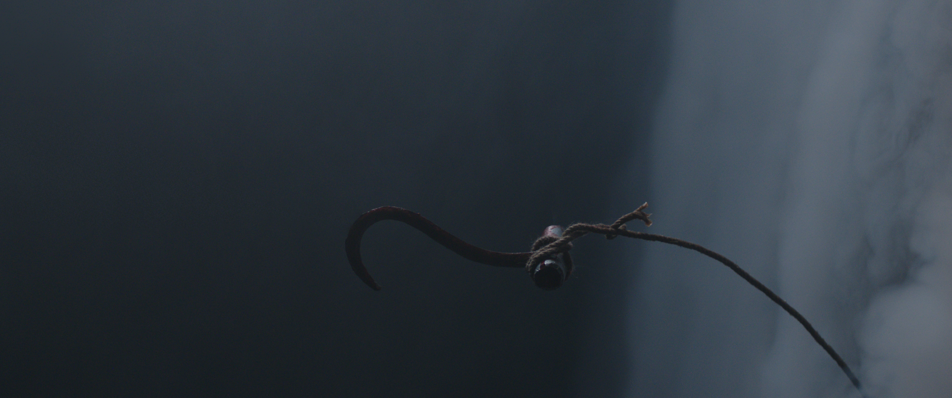 All that remained were a few spots of cleanup throughout the film with some time given to the emergence of the hook, fittingly drawn up by a fishing line. The only catch? With so much mist and smoke around the hook, it required a fair amount of inpainting and layers of soft masking, sampling the spaces around the line in order to conceal it.